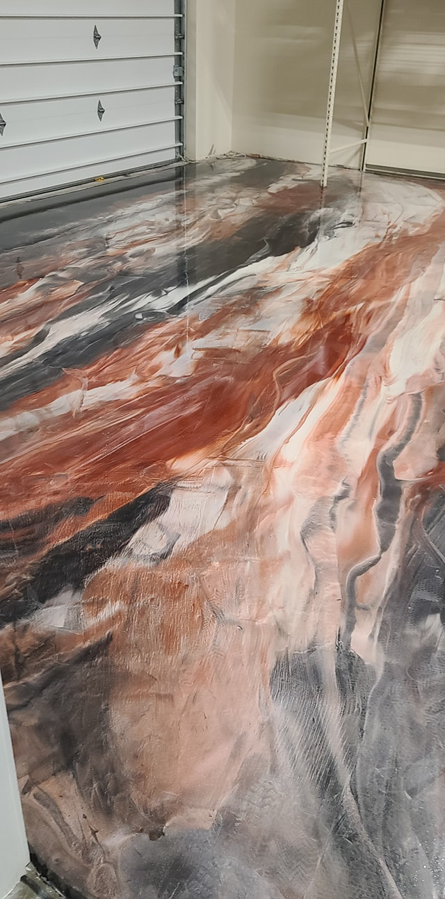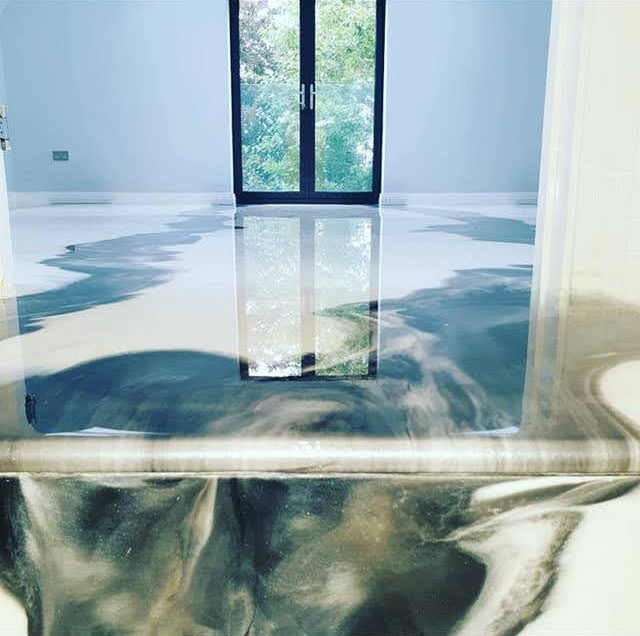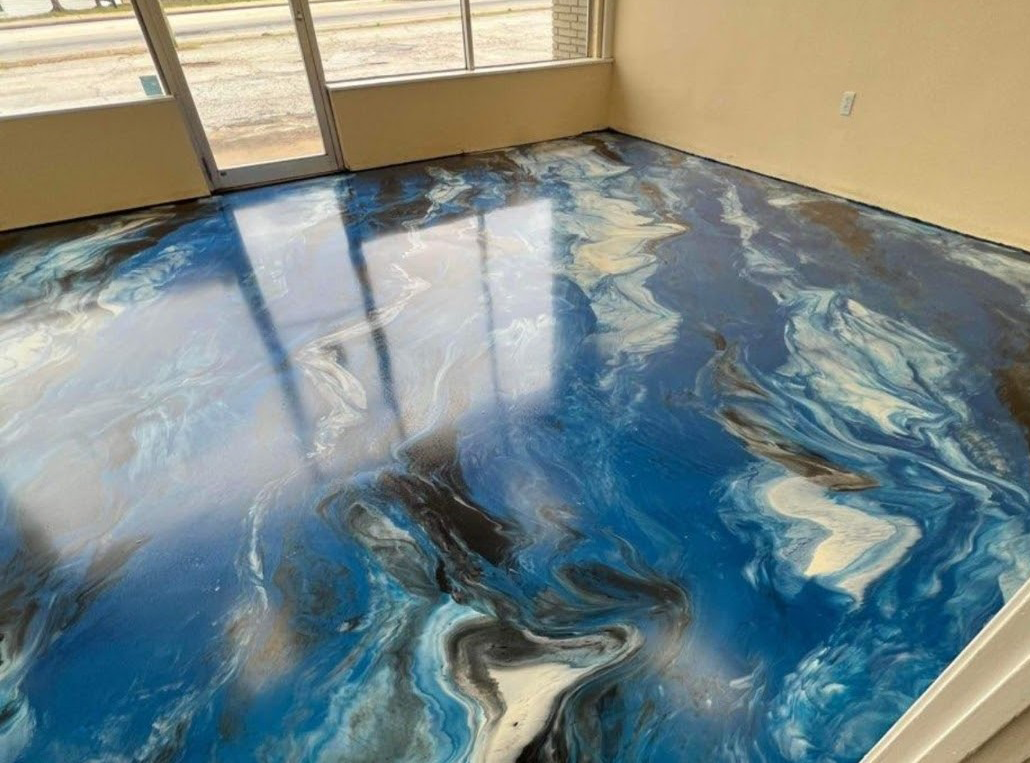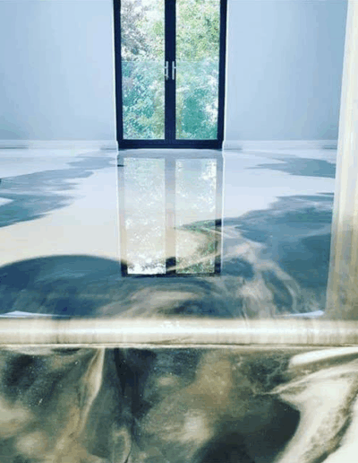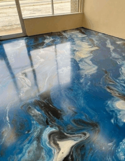 Metallic epoxy flooring solutions create a stunning, high-gloss finish with flowing metallic pigments that produce a unique, three-dimensional look while providing a durable and seamless surface.