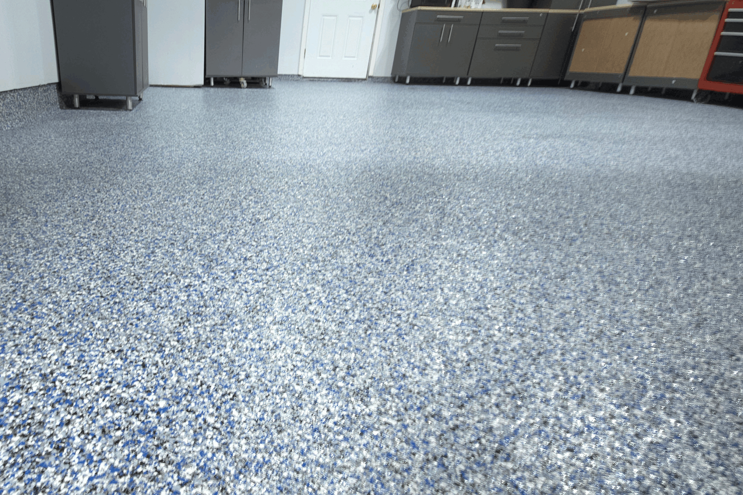 Flake epoxy flooring solutions combine durability with decorative appeal, featuring multicolored vinyl flakes embedded in epoxy for a textured, slip-resistant, and visually striking finish.